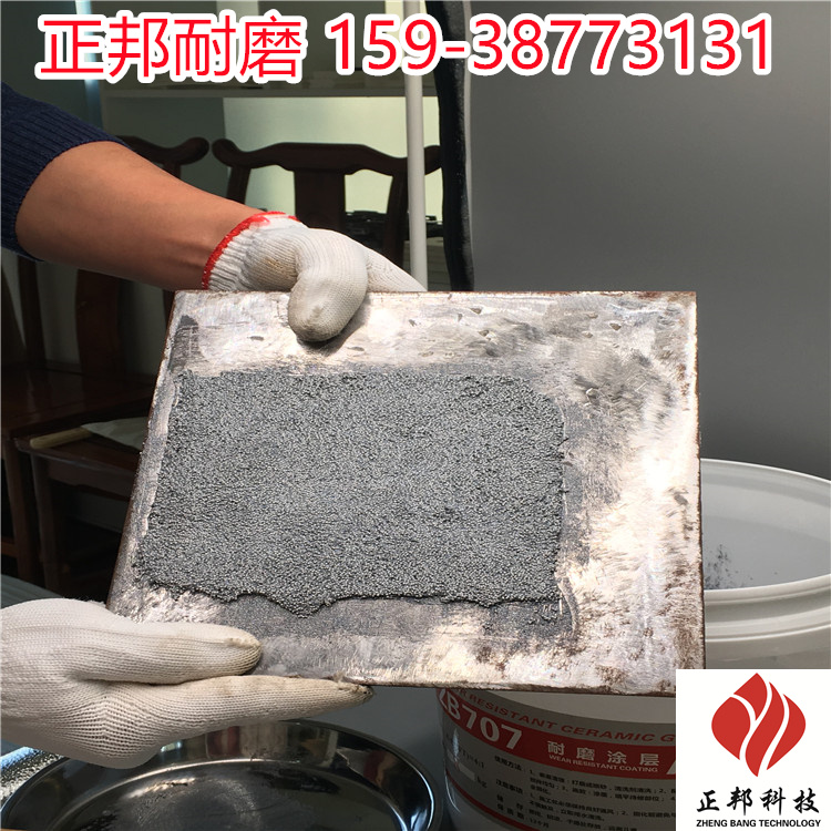 3. 将搅拌均匀的耐磨陶瓷涂层用油灰刀或刮刀用力均匀涂抹在金属表面,注意每次刮涂的衔接须连接好,不能出现空洞或者重复刮涂的现象,以保证材料能均匀涂抹在金属表面并与金属能粘合牢固。
