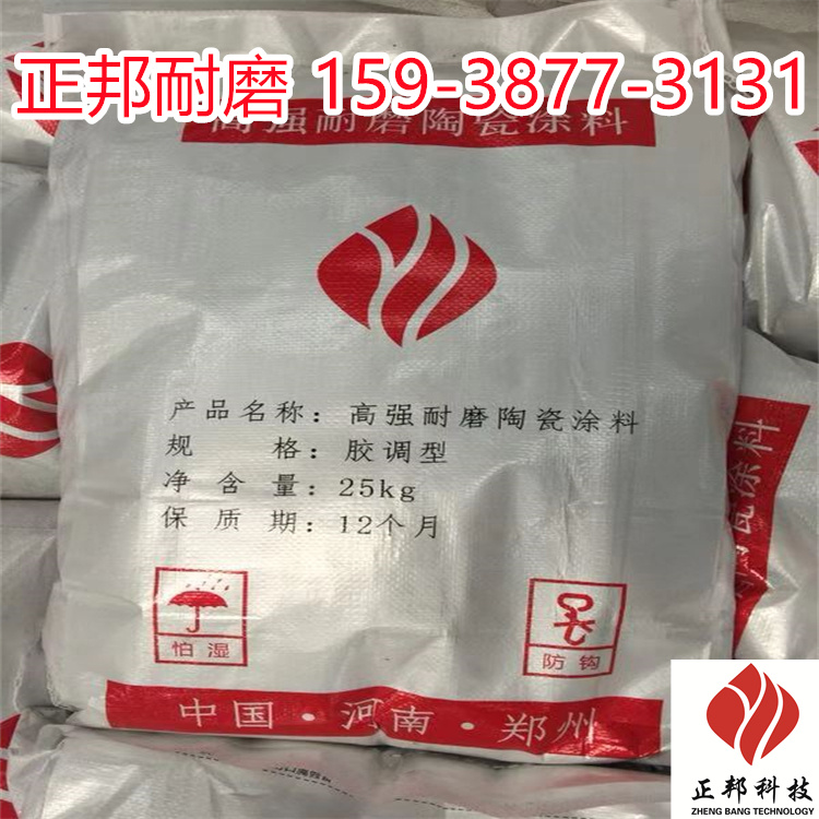 其特点是:具有稳定的抗压抗折强度。防磨料主要由耐磨骨料和结合耐酸碱结合剂组成,密度可达到每立方2.75,强度可达130MPa,比一般混凝土和耐火浇注料密度和强度增加20%到30%,主要是采用了离子化合物和部分人工合成共价化合物,再加上金刚石骨料很好的耐磨性能和稳定性,所以强度和刚度很大,可抵御物料的冲击力和剪切应力。而结合系统由于采取复合强化措施处理,形成化学结合,致使其强度很高并且有很好的韧性及耐磨性。具有优良的韧性和抗震性。由于耐磨陶瓷涂料采用内衬龟甲网和防爆钢纤维的增强措施,能更进一步改变韧性,所以断裂韧性强,可防止冲击力造成的破损和剥落。