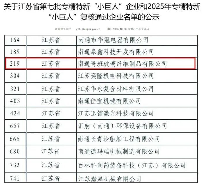 近日,江苏省工业和信息化厅发布了国家级第七批专精特新“小巨人”企业名单及2025年度复核通过企业公示。