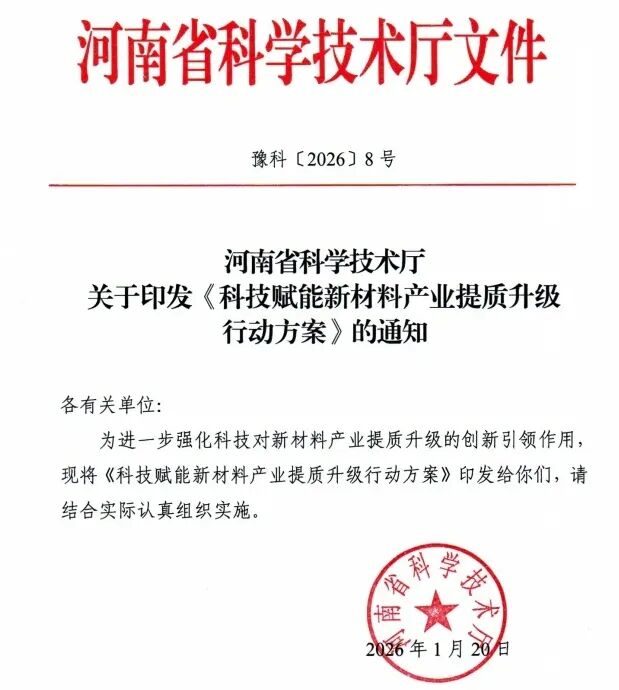 近日,河南省科学技术厅印发了《科技赋能新材料产业提质升级行动方案》(以下简称《方案》),明确提出推动科技创新与产业创新深度融合,全面提升新材料产业核心竞争力与自主创新能力。