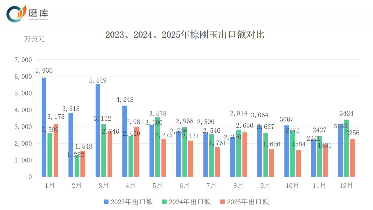 2025年,中国棕刚玉出口总量为412,973吨。从月度走势来看,1月出口量最高,达到47,382吨;