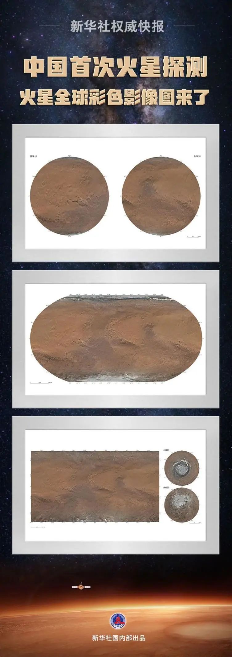 4月24日,在2023年“中国航天日”主场活动启动仪式上,国家航天局和中国科学院联合发布了中国首次火星探测火星全球影像图。这些图像数据将为人类深入认知火星作出中国贡献。