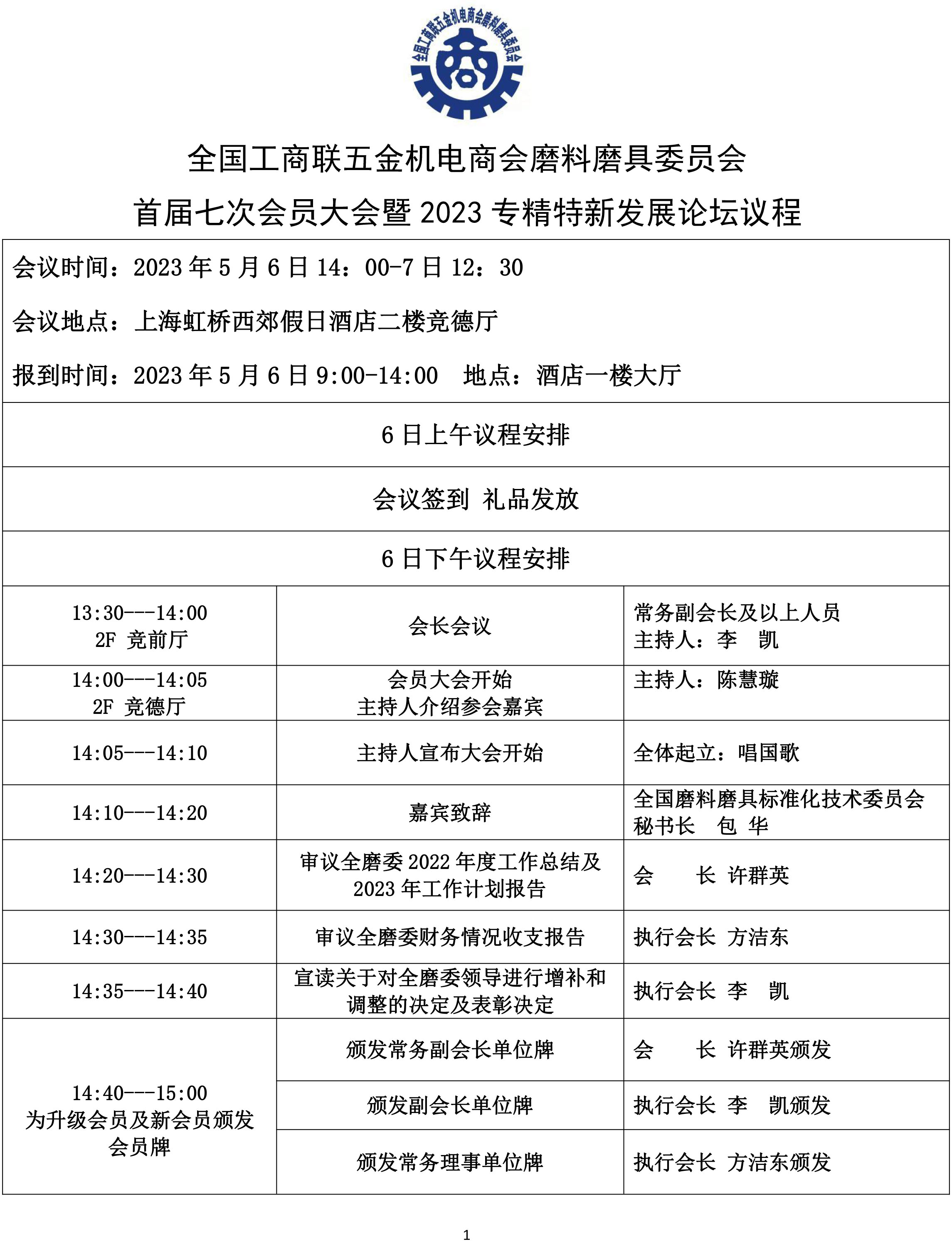 全磨委首届七次会员大会暨2023专精特新发展论坛议程公布