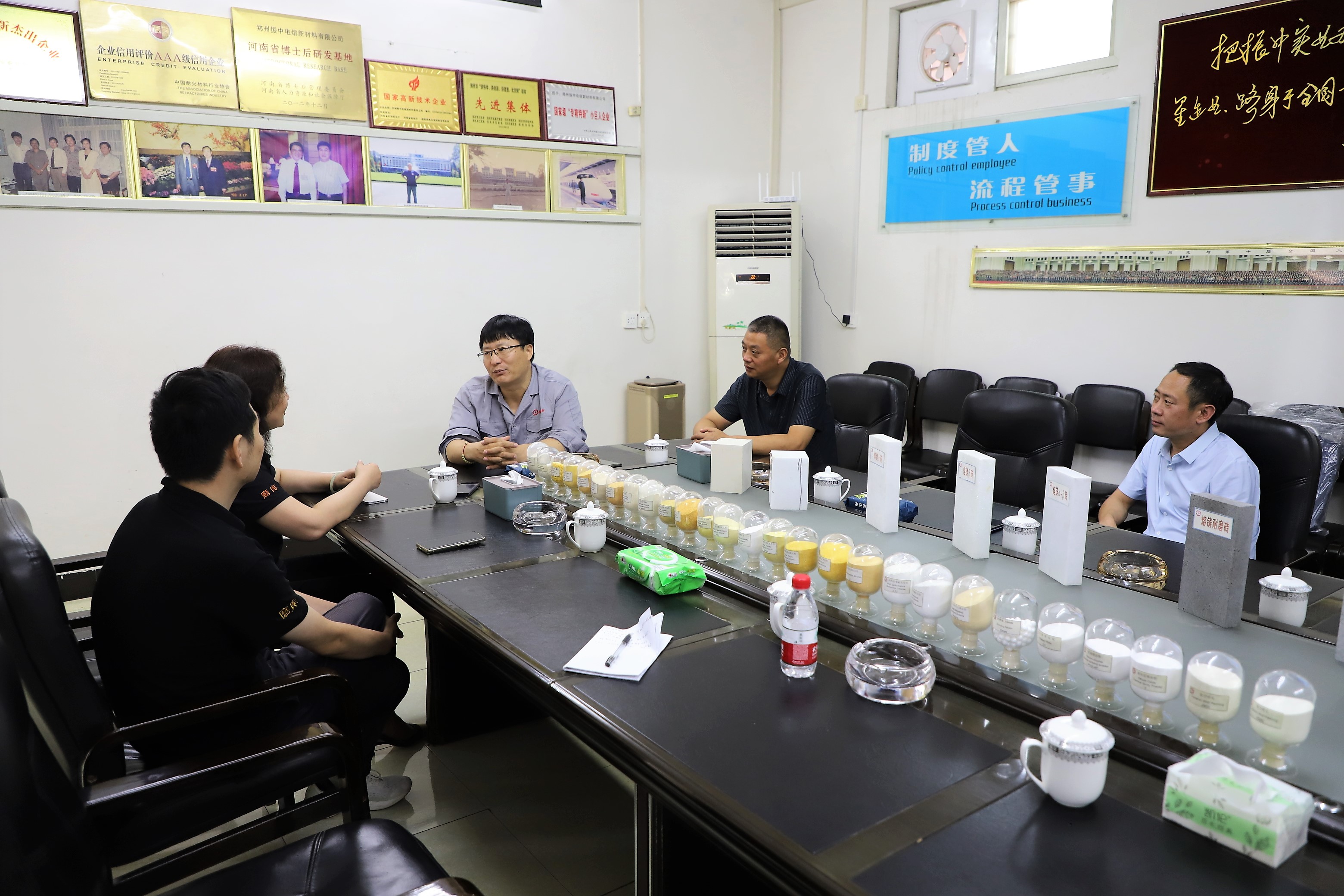 8月17日,磨库一行来到了郑州振中电熔新材料有限公司,拜访了销售总监曾民安、业务总监刘官清、总工程师李福山。