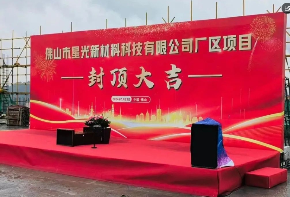 1月23日,佛山市星光新材料科技有限公司在佛山市三水区白坭镇聚龙湾举行新厂房封顶仪式。此次仪式标志着公司发展迈向新的里程碑,并对产业经济的高质量发展具有积极的示范作用。